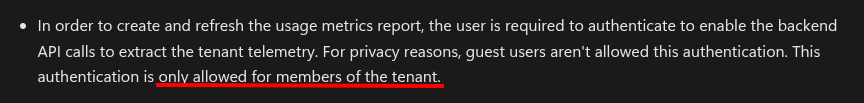 Last weeks I had several meetings with Microsoft support to try this wrong credentials issue. The problem was that after right clicking to “View Usage Metrics Report” the report would come up empty and after 24h you would get an email with the following message: